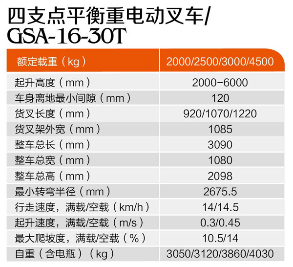 四支點(diǎn)平衡重電動(dòng)叉車(chē)GSA-16-30T