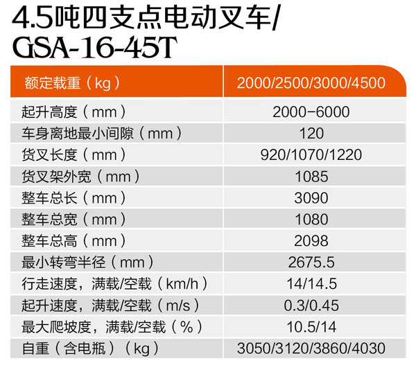 4.5噸四支點(diǎn)電動(dòng)叉車(chē)GSA-16-45T