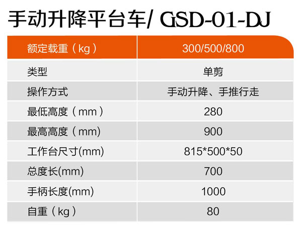 手動升降平臺車GSD-01-DJ