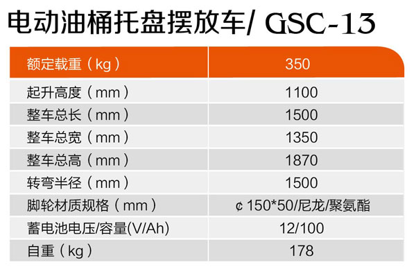 電動(dòng)油桶托盤(pán)擺放車(chē)GSC-13